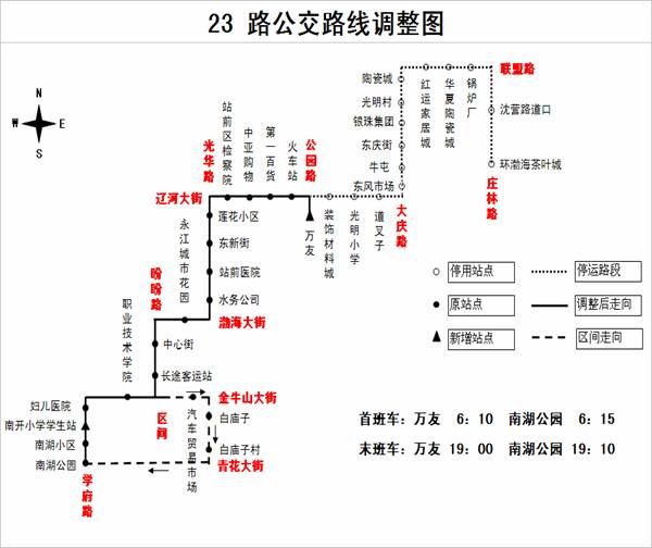 “環(huán)渤海茶葉城”、“立交橋”、“育新郵局”、“東風市場”、“道叉子”、“光明小學”、“裝飾材料城”、“火車站”,以上共計8處站點停用;